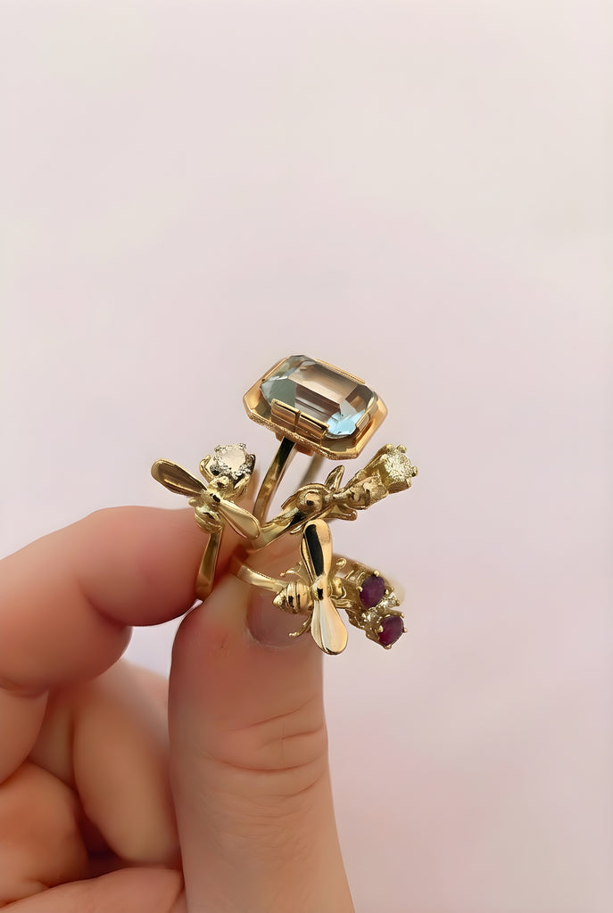 Upcycled gems and diamonds in fine jewelry, repurposed from previously loved stones, reborn with offbeat, wild energy and renewed beauty.