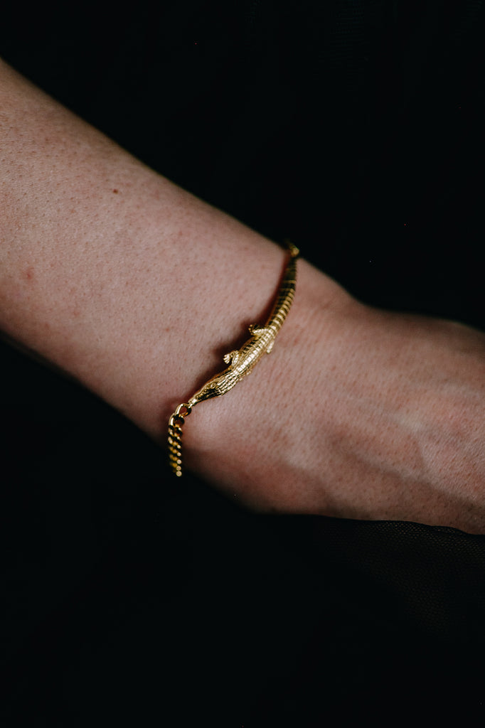 This bold alligator bracelet commands attention. Featuring a finely detailed alligator, this statement piece embodies fearless energy and untamed elegance. Designed for those who love to make a striking impression, it’s a piece that doesn’t whisper—it roars.