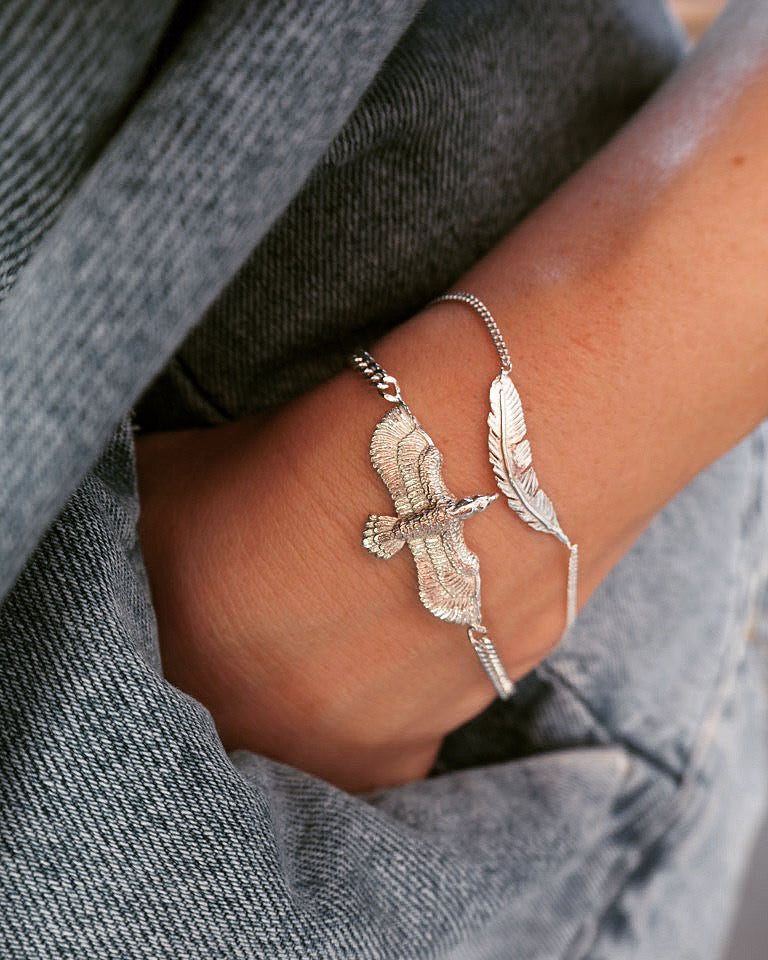 Embrace bold elegance with the Raven Bracelet. Crafted in solid silver, this striking piece features a raven wrapping around your wrist, symbolizing freedom and transformation.