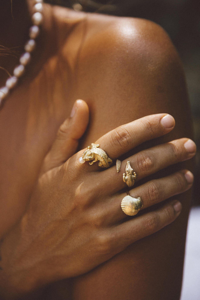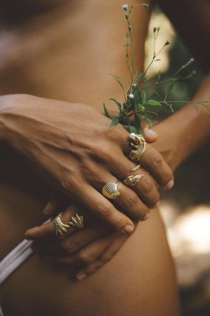 Moulded from a real seashell— this ring adds a unique, organic touch. It’s the perfect piece to wear solo for a bold look, or stack with other rings to create your own custom vibe. Whether you’re keeping it chic and simple or layering for added drama, this ring brings a refined yet wild energy to your style.