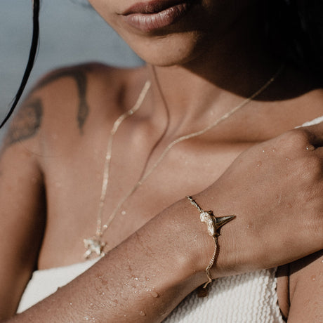 Sharks don’t swim backwards, and neither do you. This striking bracelet features one intricately designed shark tooth in 18k gold-plated silver, capturing the raw power and forward momentum of the ocean's fiercest predator. Designed for those who aren’t afraid to dive deep and embrace the wild, it’s the perfect piece for anyone who’s all about pushing forward.