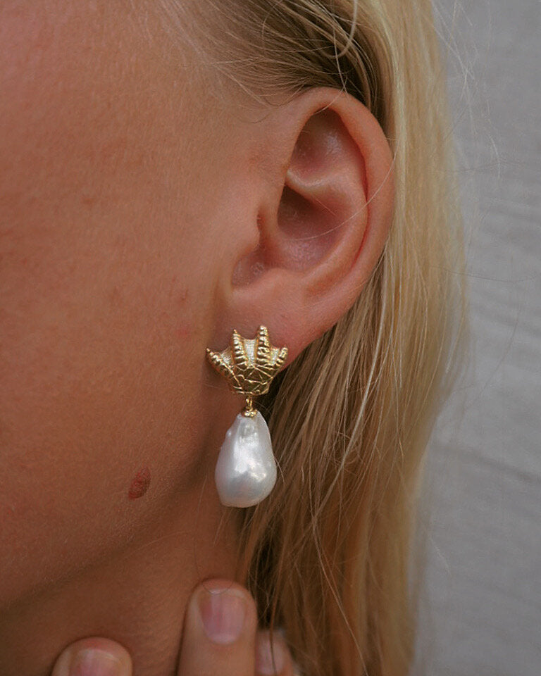Let’s crawl into bold elegance! The Crawl Earrings feature a fierce lizard design, gracefully wrapping around the earlobe, with a stunning white freshwater pearl hanging from each. These earrings are the perfect blend of wild energy and luxurious charm. The lizard symbolizes adaptability, resilience, and boldness, while the lustrous pearl adds an element of refined beauty.