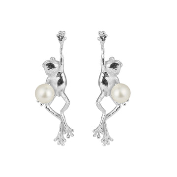 Not all magic sparkles. Some waits quietly — watchful and ready to leap. This frog earring is a symbol of raw potential and transformation, crafted for those who believe change comes from within. Hand-forged in solid silver with sculptural detail, it’s accented with a luminous pearl or vibrant emeralds that capture the wild beauty of nature. A little wild, a little witchy, and totally unapologetic.