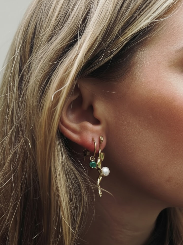 Not all magic sparkles. Some waits quietly — watchful and ready to leap. This frog earring is a symbol of raw potential and transformation, crafted for those who believe change comes from within. Hand-forged in solid silver with sculptural detail, it’s accented with a luminous pearl or vibrant emeralds that capture the wild beauty of nature. A little wild, a little witchy, and totally unapologetic.