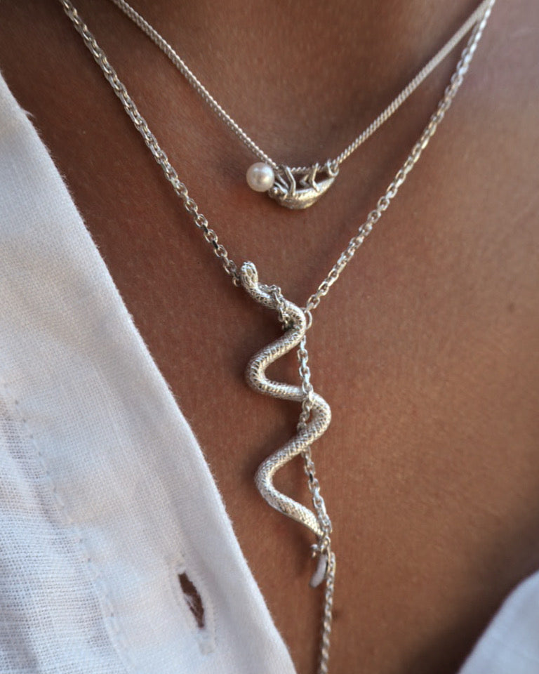 Let’s get wild with the Chameleon Necklace. A tiny, stylish piece that effortlessly adapts to your look. With its playful chameleon design and the option to add a small freshwater pearl to its tongue, this necklace is perfect for those who love unique and chic accessories. A subtle statement piece with endless possibilities.