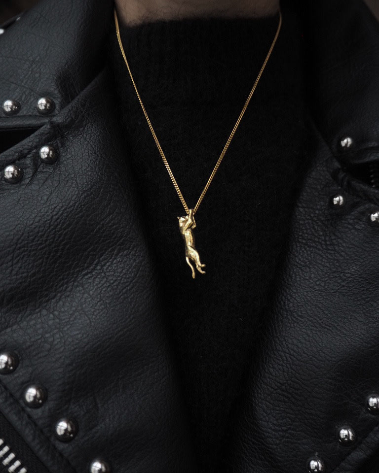 This fierce and graceful pendant features a powerful lioness clinging to the chain. The lioness symbolizes leadership, power, and beauty. Handmade in Stockholm, this necklace blends elegance with untamed strength, a true statement piece for those who dare to stand out.