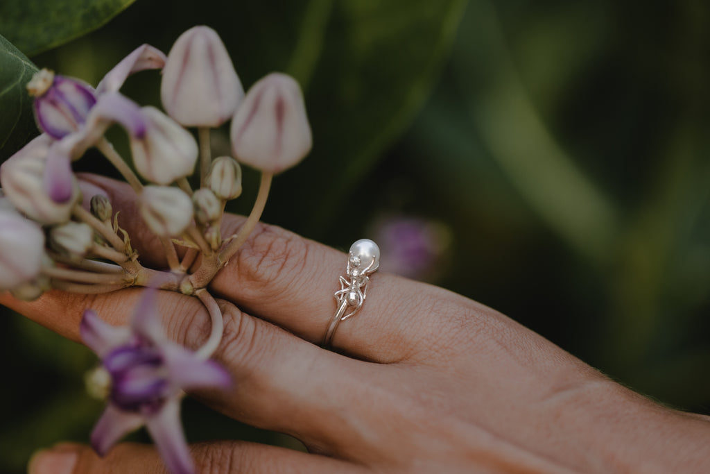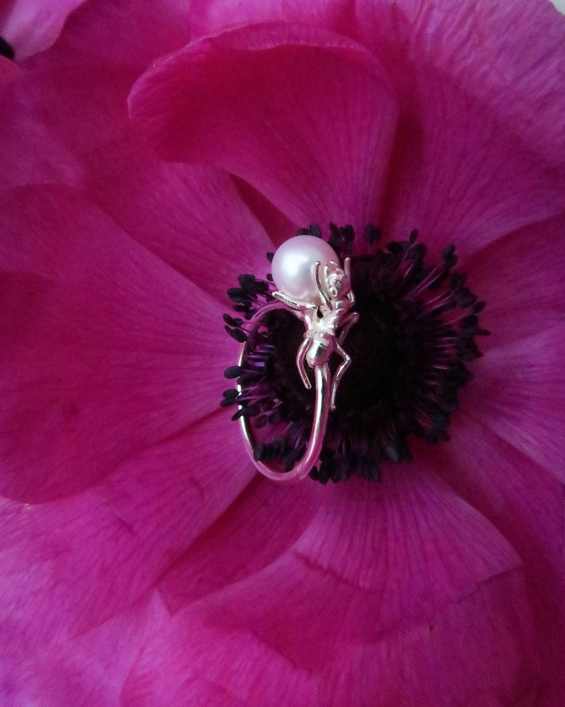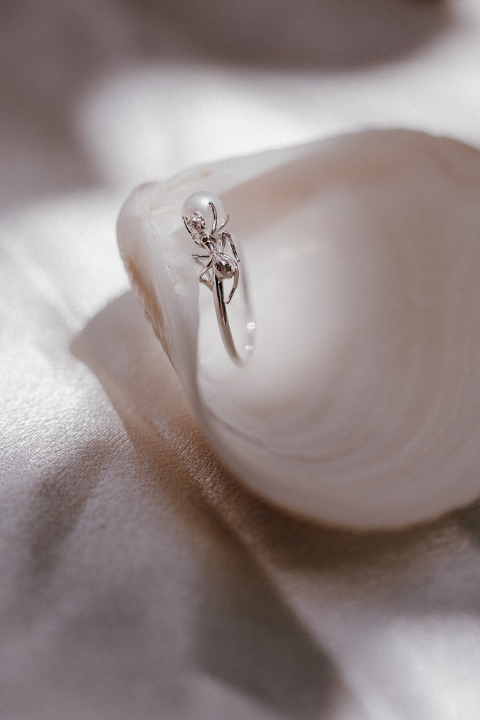 Who runs the world? Ants, obviously. This little silver legend is working overtime—stealing the spotlight and a pearl. The Ant Ring features a sculpted ant hauling its shiny prize like the boss it is. A tiny tribute to nature’s most determined hustler.