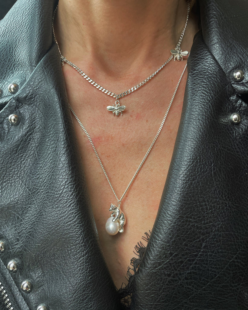 Handcrafted in our Stockholm studio from solid silver, the Beehive Necklace is all about making a statement—no sweetness required. Just clean lines, polished accents, and a buzz of cool confidence.