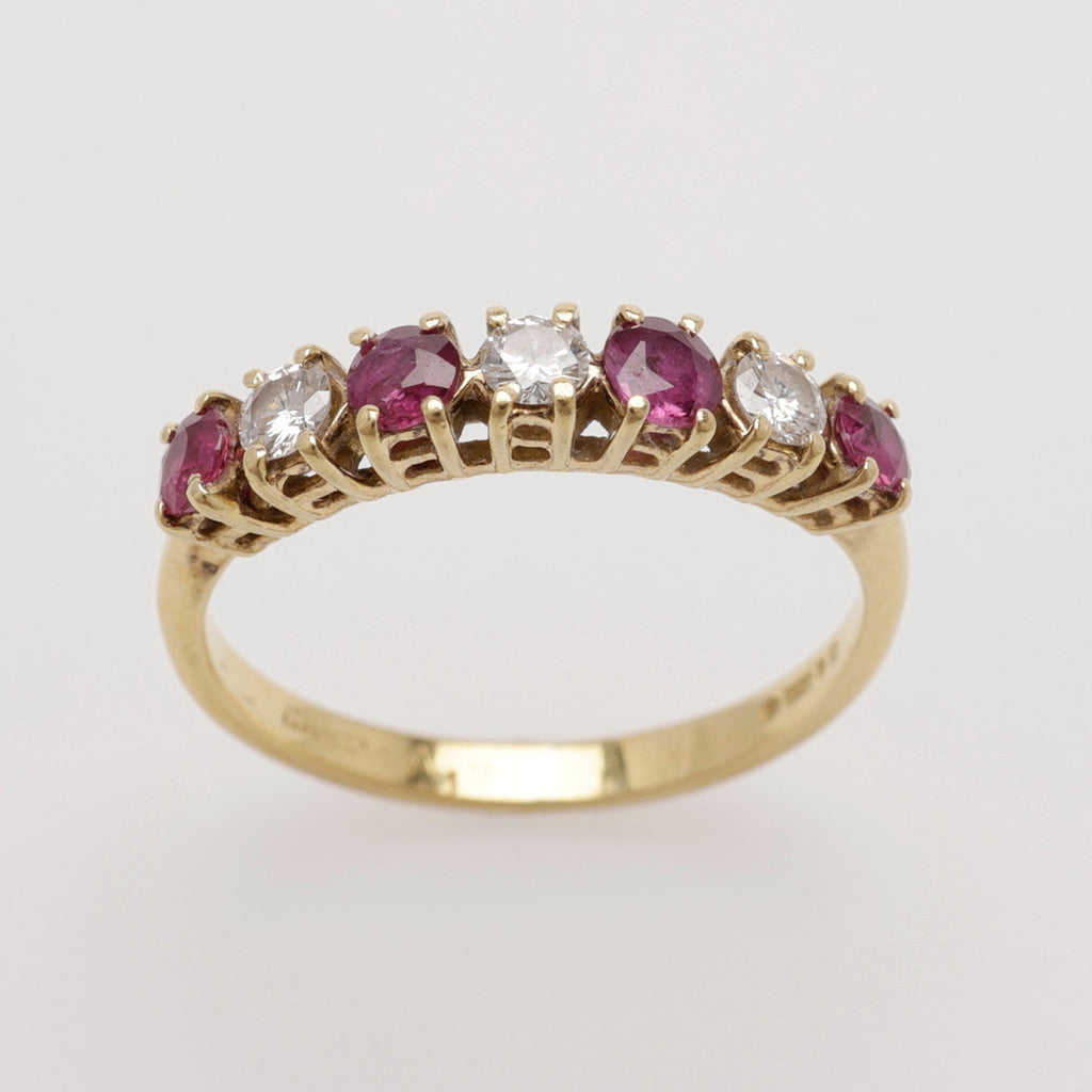 This stunning ring has been remade and upcycled, giving a second life to precious materials. Crafted in 18K solid gold, it features sparkling diamonds and rubies that shine with renewed purpose.