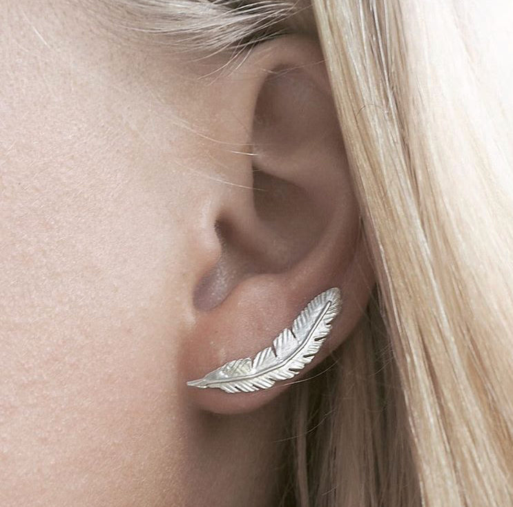 These sleek earclimbers wrap gracefully along your ear, adding a bold yet delicate touch to your style. The feather design captures nature’s elegance, while the edgy earclimber style ensures a statement-making look. Perfect for those who love to mix sophistication with a little wild spirit.